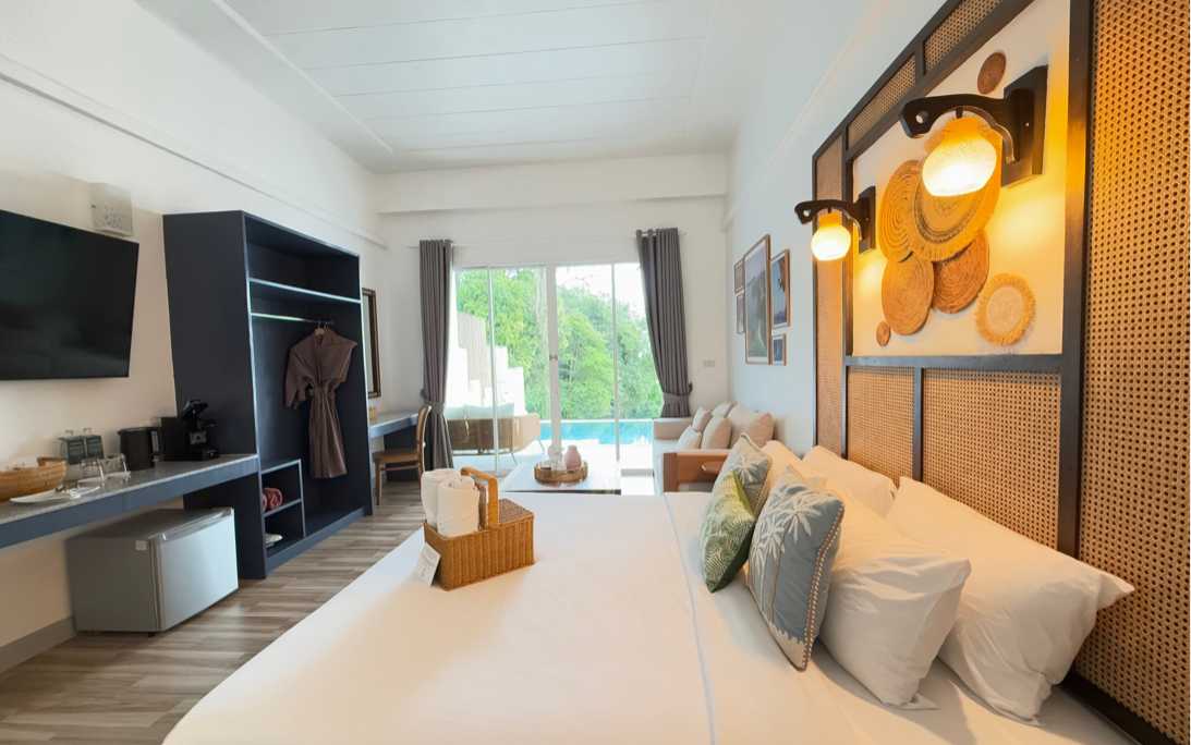 In each Pool View Studio with a private pool, meticulous design creates an authentic atmosphere of privacy and tranquility. With effortless access to the resort's main facilities, your stay becomes a harmonious blend of convenience, comfort, and the tranquil beauty of beachfront living. Immerse yourself in this unique experience for an unforgettable retreat by the sea.